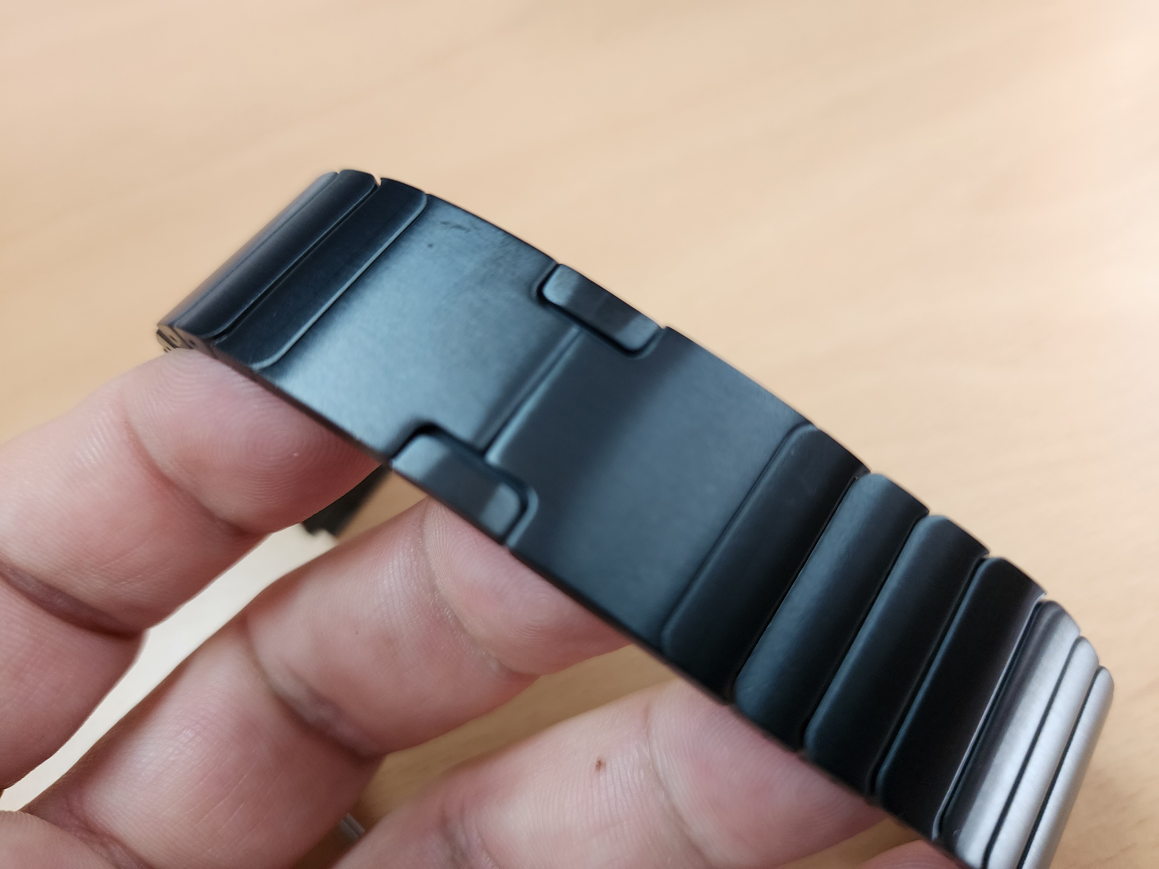 스테인레스 스트랩과 티타늄 스트랩 중에 어떤걸 살까 고민을 했습니다. 알리에서 티타늄 스트랩이 스테인레스와 가격차이가 많이 나지 않아 고민을 했는데 스테인레스 스트랩을 구매했습니다. 티타늄 스트랩의 리뷰가 "무겁다", "가짜다"라는 리뷰를 보니 피할 수 밖에 없었습니다. 도금을 티타늄처럼 보이게 해서 판매를 하고 있어 살 수가 없었습니다.