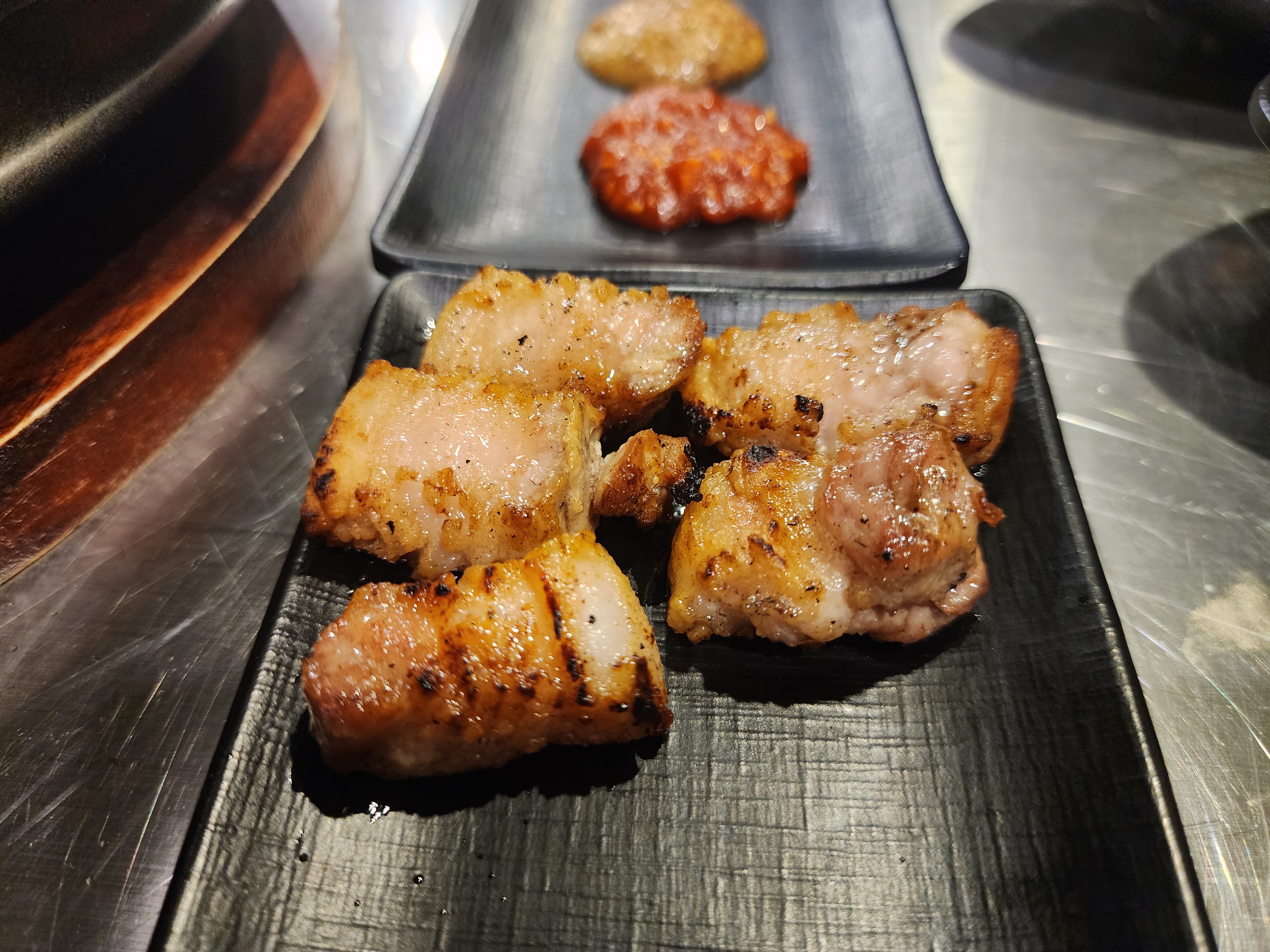 오목교역에 있는 많은 고깃집들이 점원이 구워주는데 이곳도 비슷한 음식점입니다. 부안집과 비슷하게 여러가지 소스로 먹을 수 있습니다. 고기는 지방이 많이 있는 편이였습니다. 요즘 제주도 고기집처럼 비계가 절반 이상입니다.