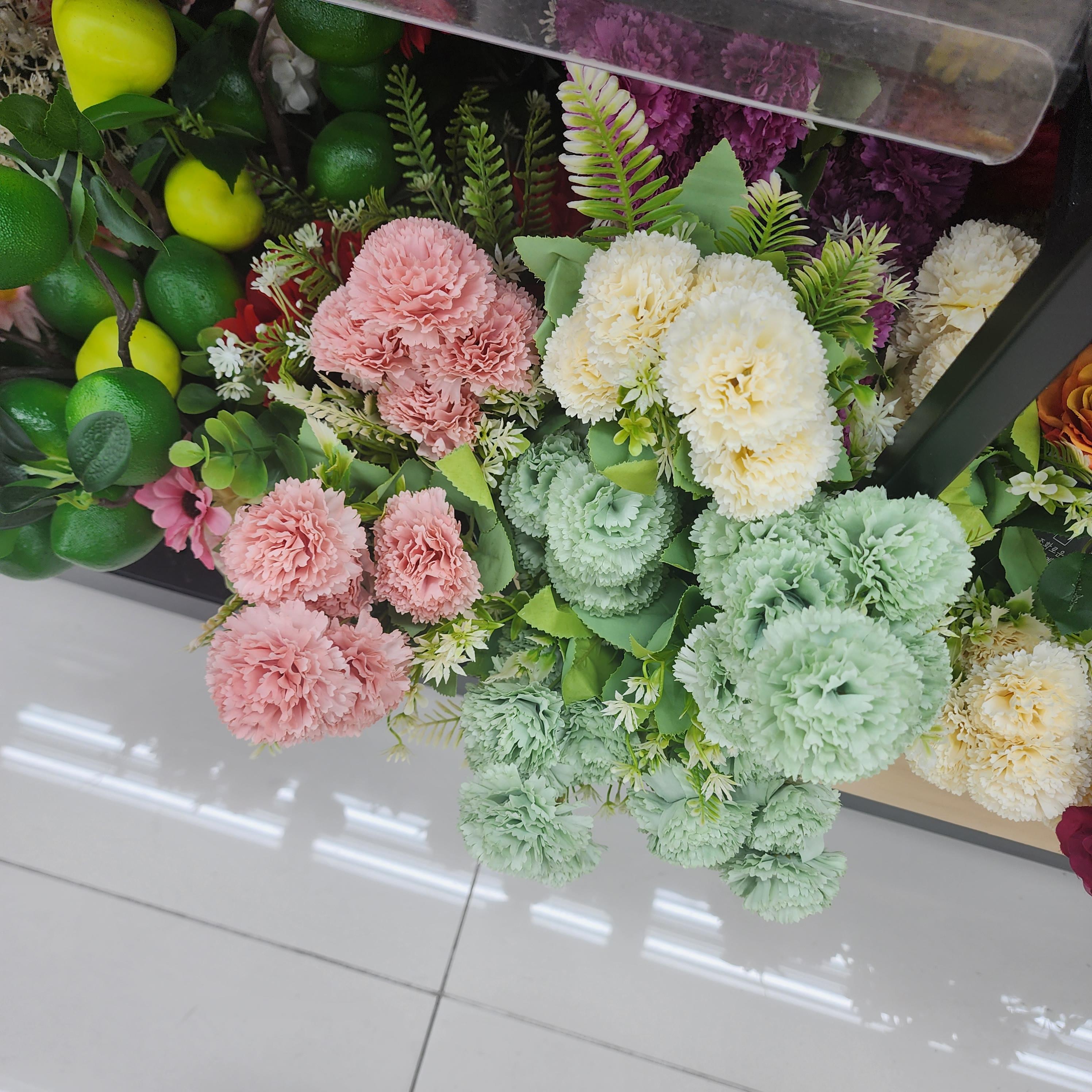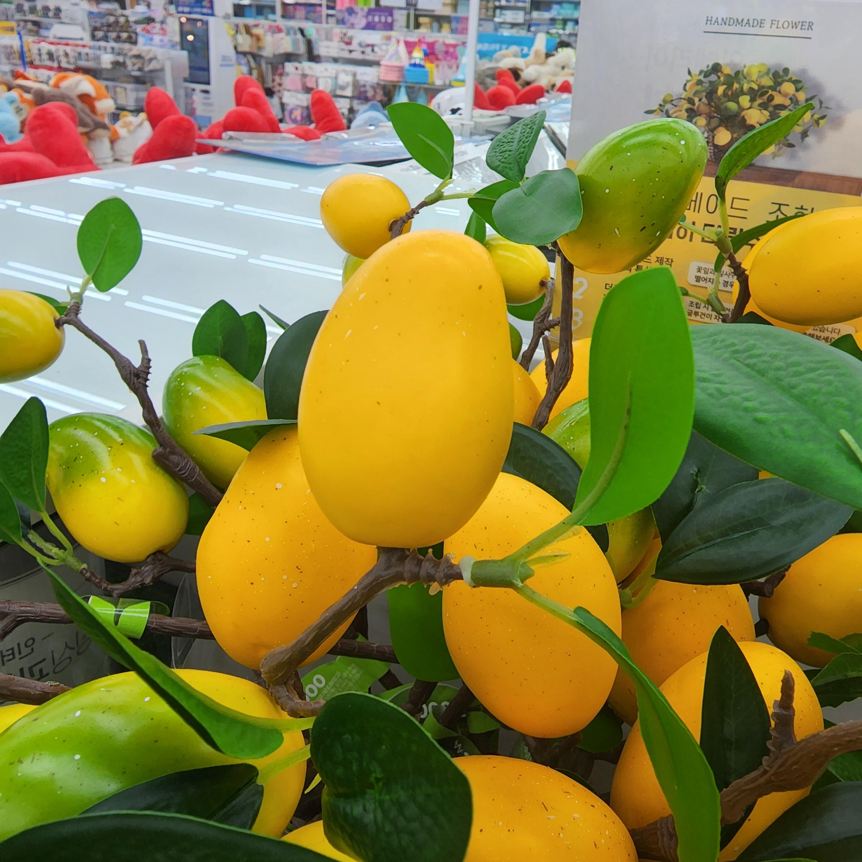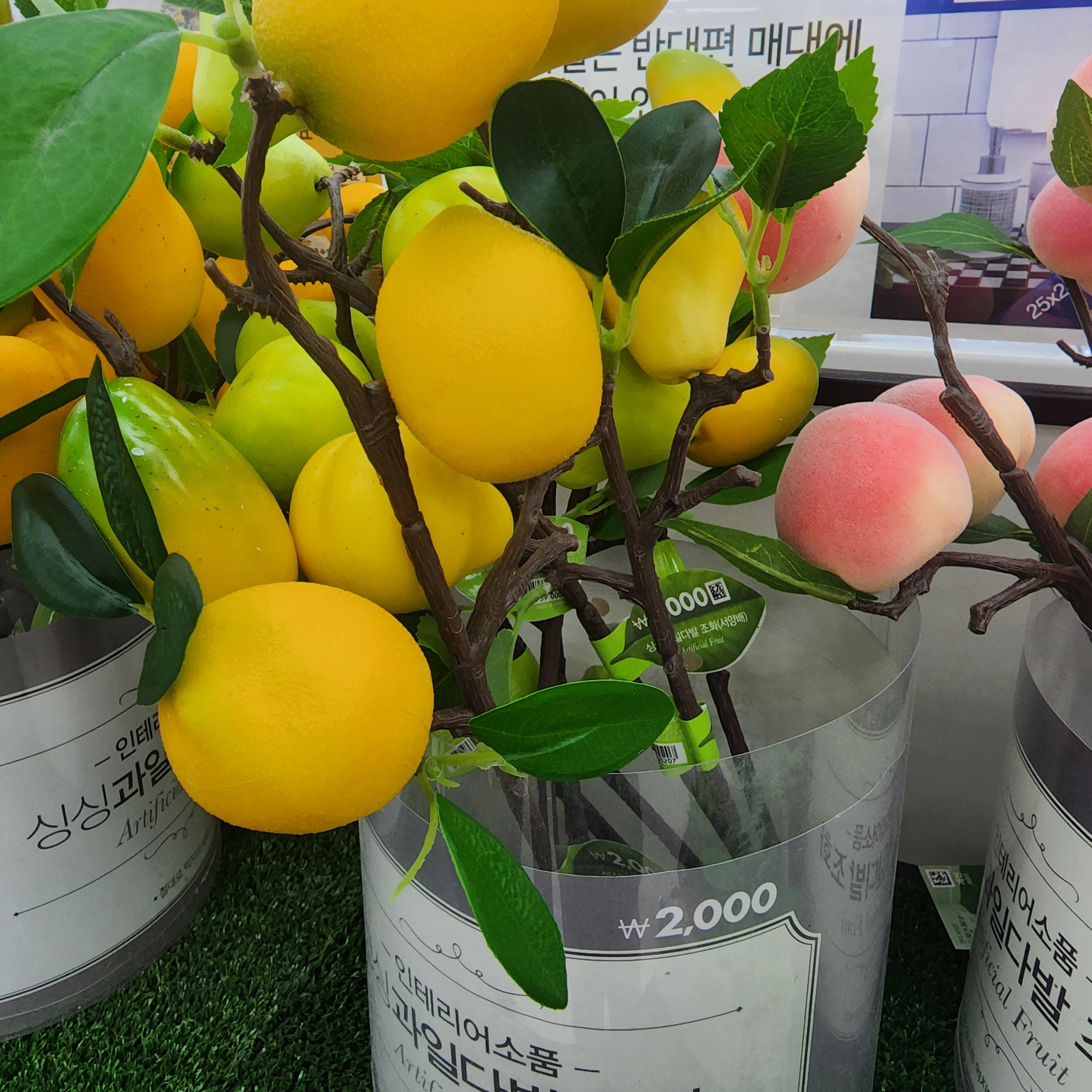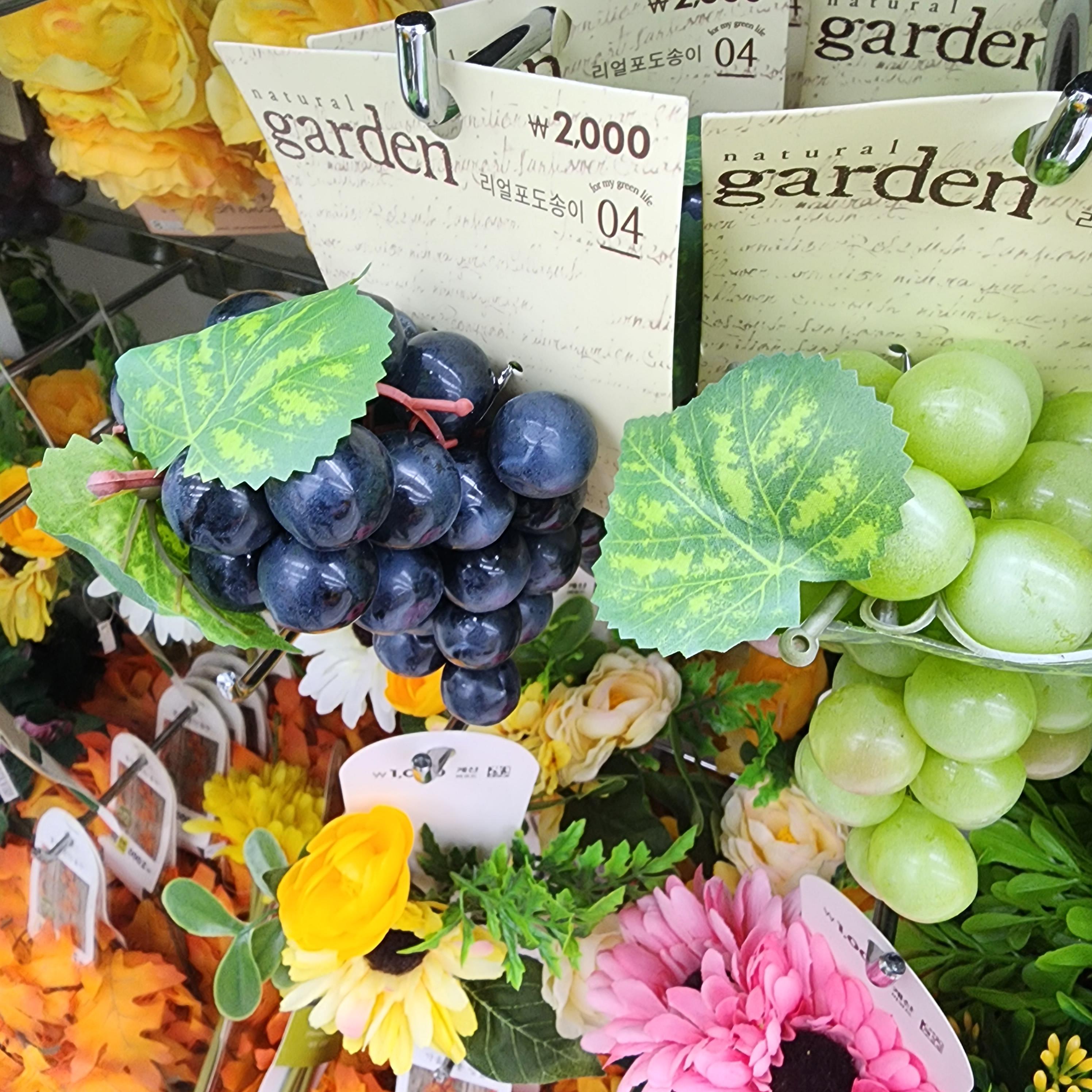 다이소에 있는 조화로 침구류나 의류촬영할때 소품으로 쓰기 좋고 인테리어 소품으로도 좋아보입니다. 다양한 과일과 꽃도 있었습니다. 화분으로 된 조화나 식품 목업도 여러개를 볼 수 있었습니다.