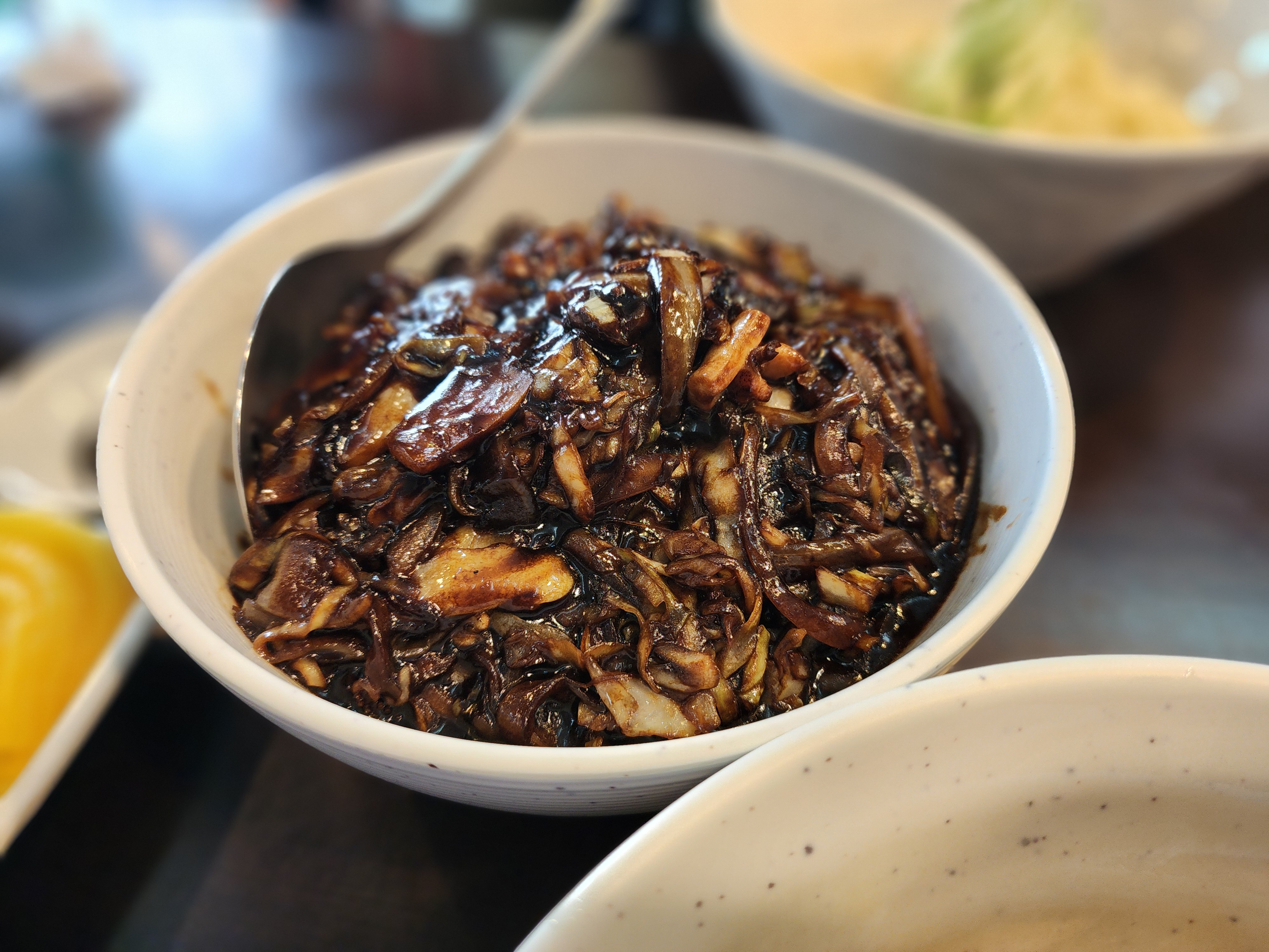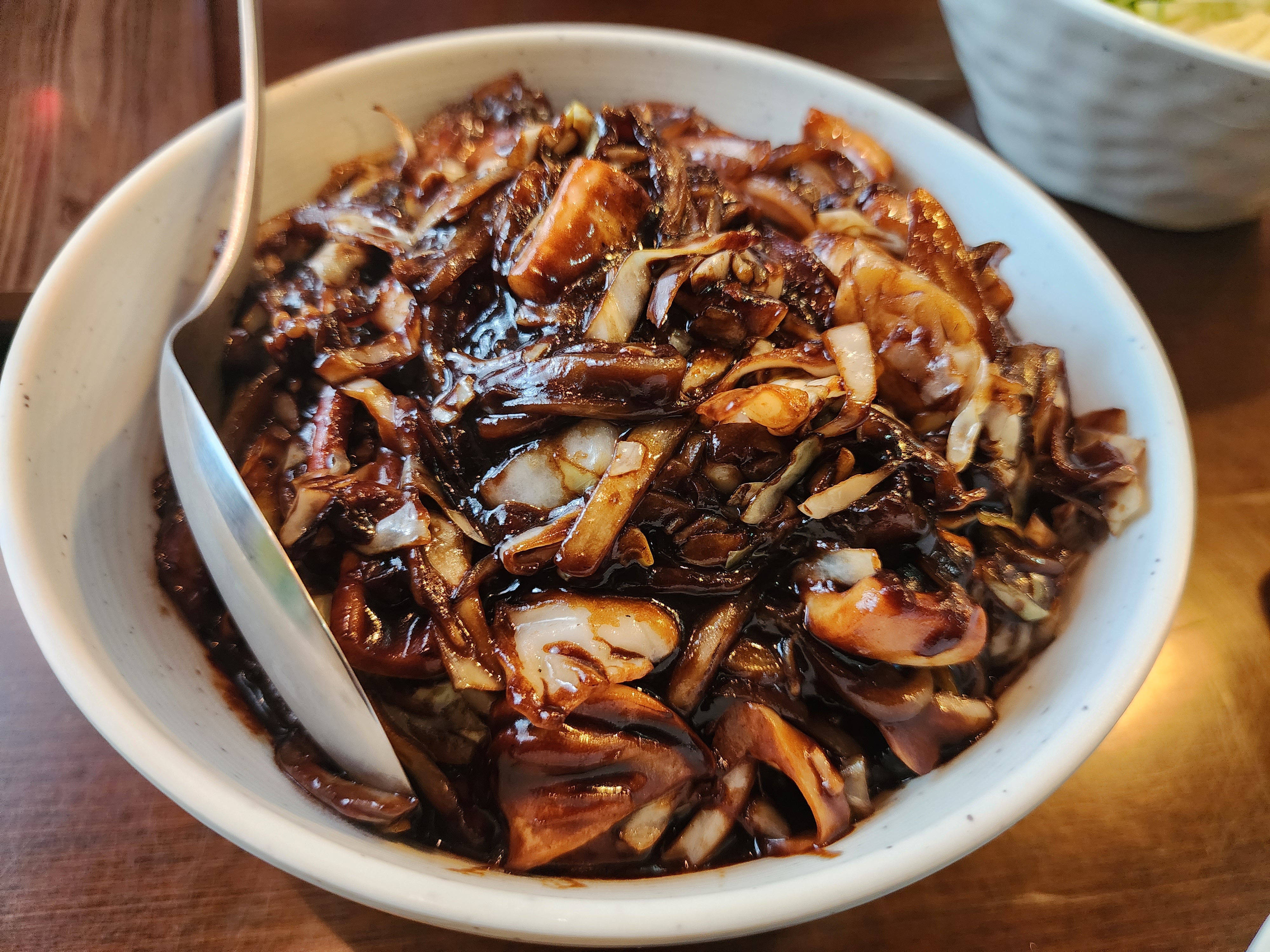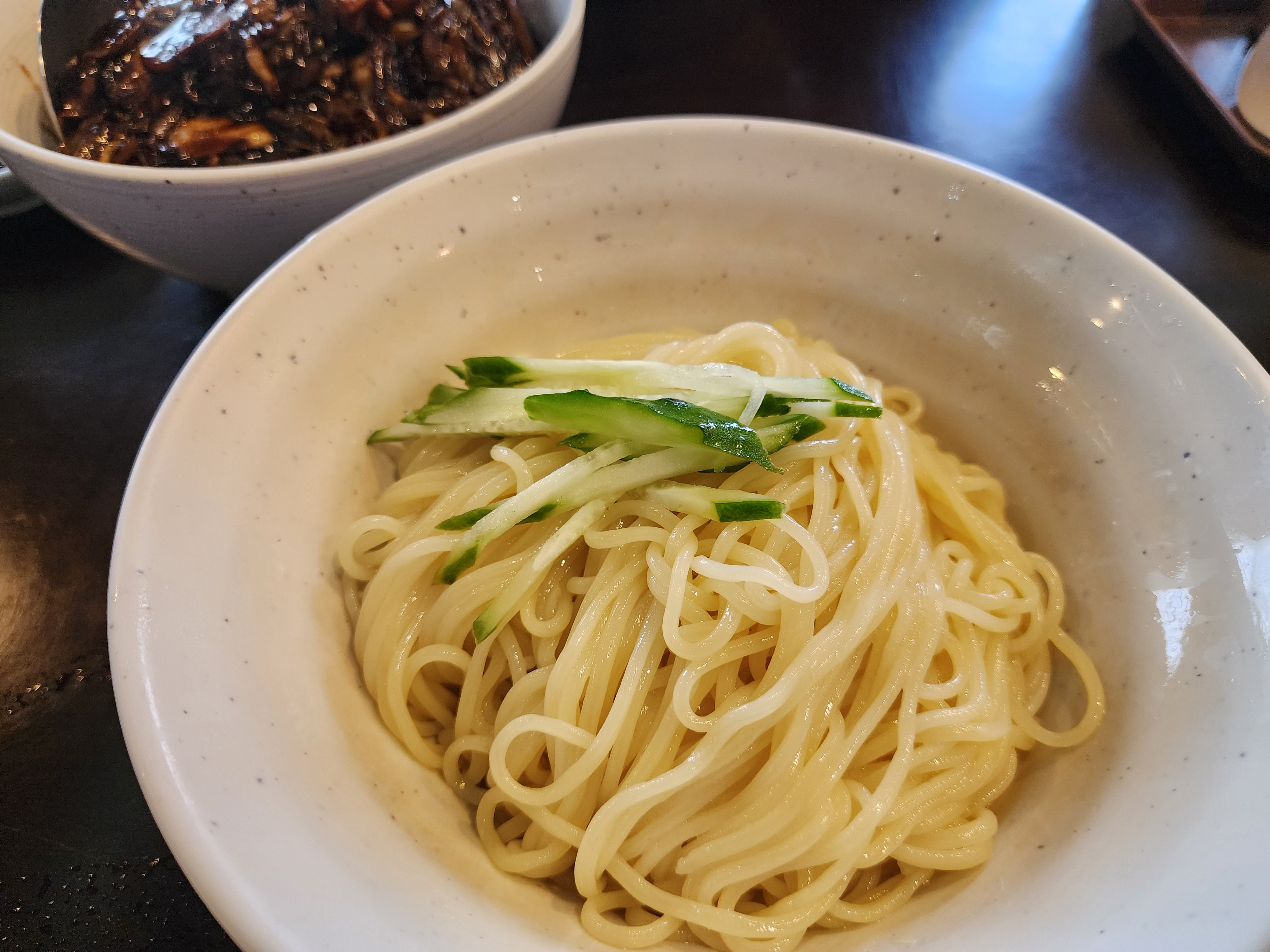 얇은 기계면으로 양이 많은 편입니다. 짜장은 모든 재료가 채썰기로 되어 있어 면과 짜장을 같이 먹을 수 있습니다. 짜장의 양도 많고 짠맛도 적당히 괜찮은 맛입니다.