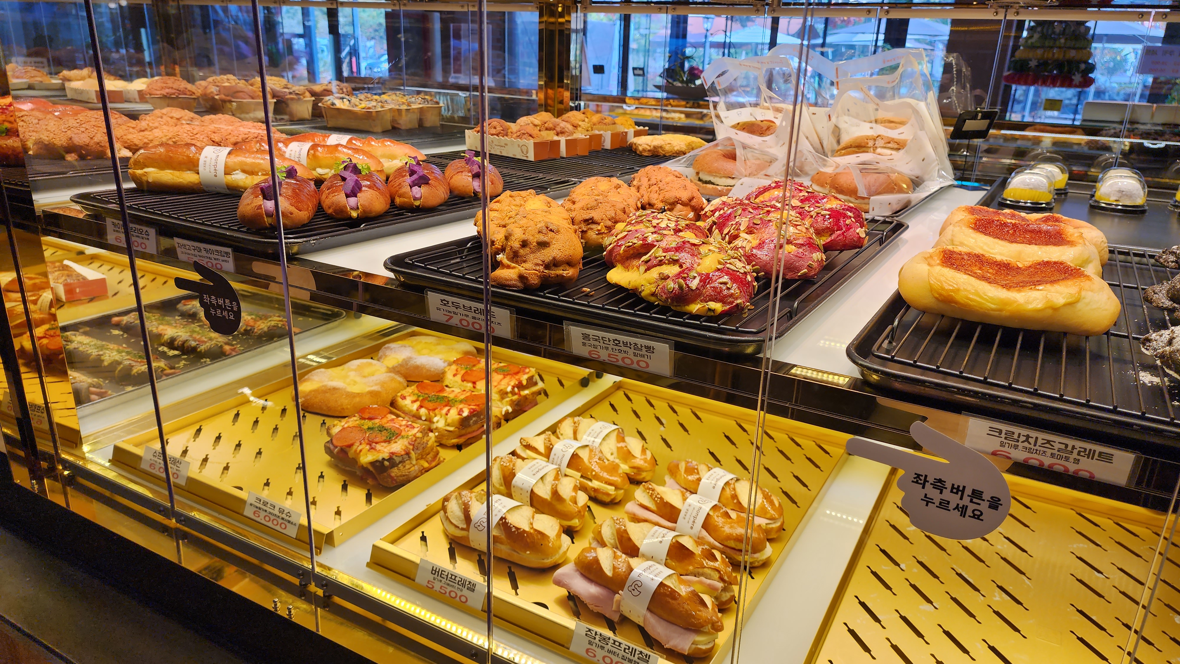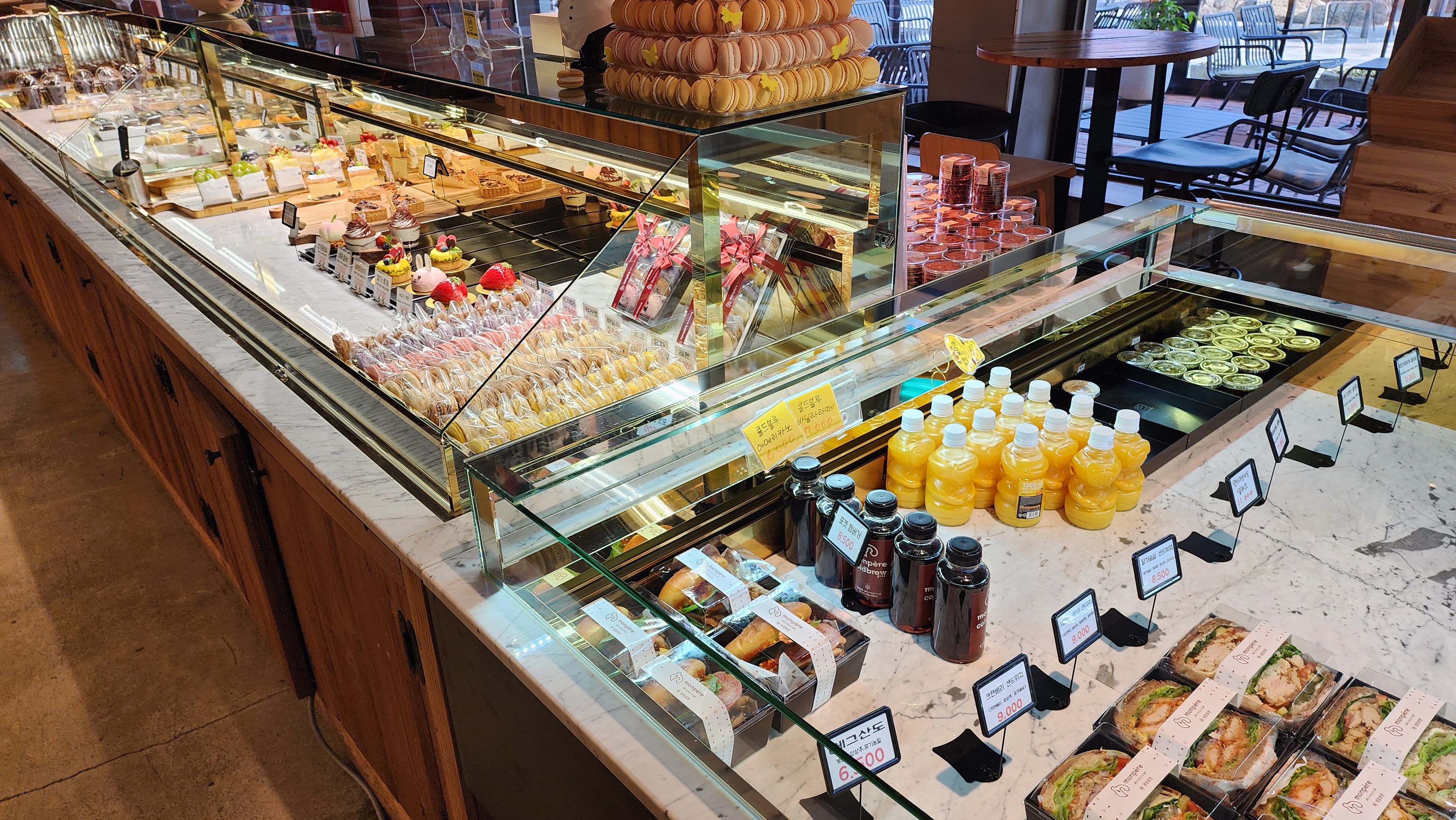 아주 다양한 베이커리가 진열되어 있었습니다. 커피보다는 베이커리를 사는데 다들 엄청나게 많이 담고 있는 모습이였습니다. 우리는 커피 한잔과 집에 가서 식구들이 먹을 빵을 조금 샀습니다. 가격은 다른 곳보다 비싼 편으로 몇 개만 사도 3~5만 원 정도 넘어갈 수 있어 꼭 먹고 싶은 것만 사는 게 좋습니다.