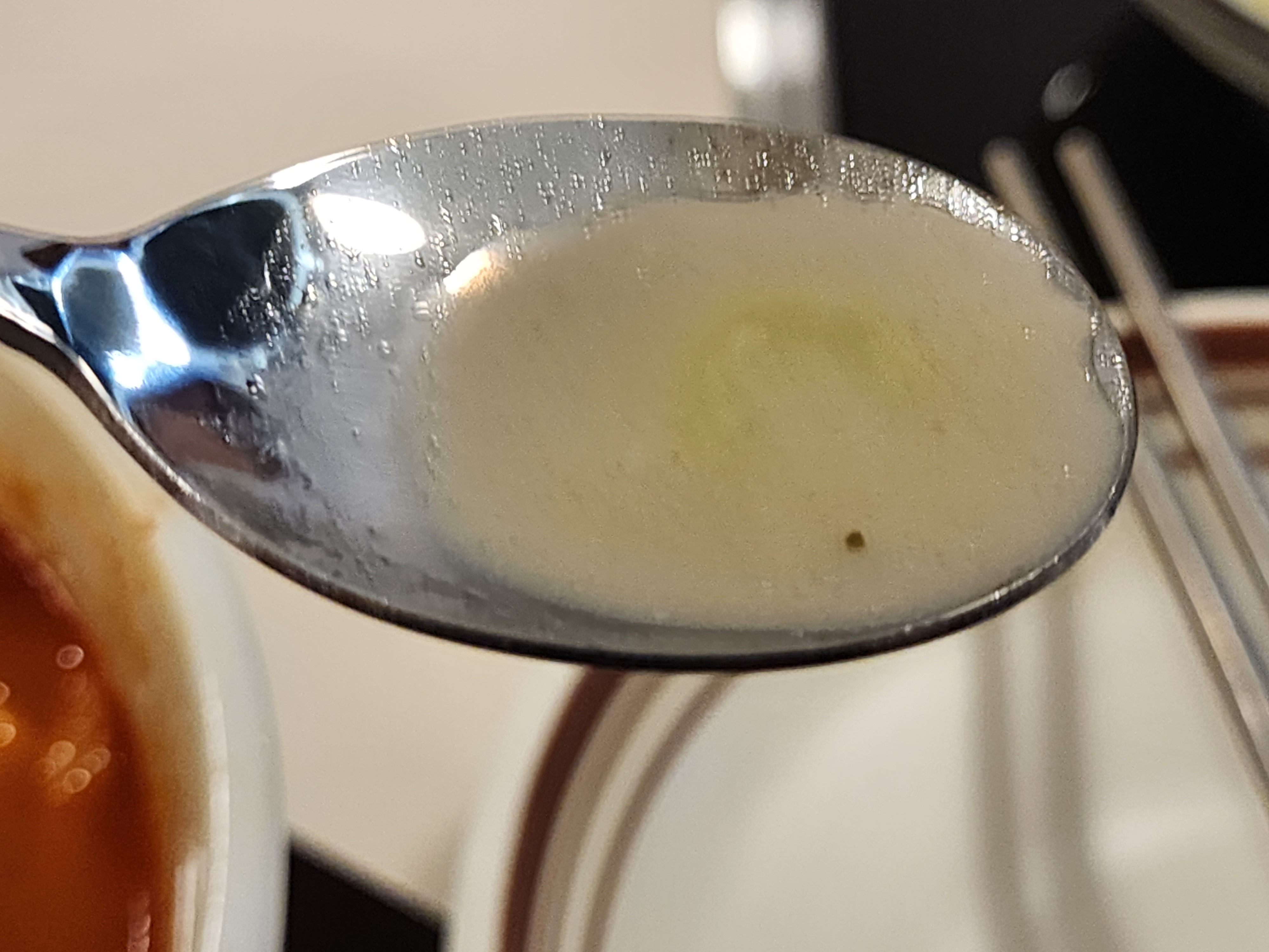 육계장 칼국수의 느낌에 감자탕을 먹는 느낌으로 2가지 음식을 먹는 느낌입니다. 이것도 아주 담백하면서 고추기름으로 약간은 기름지면서 칼칼한 맛이었습니다. 나쁘지는 않았습니다. 칼국수를 주문을 해도 공깃밥이 또 별도로 나와 양이 꽤 많습니다. 맑은 뼈국과 얼큰 칼국수 중에 선택을 한다면 맑은 뼈국이 선택할 정도로 맑은 뼈국이 괜찮았습니다.