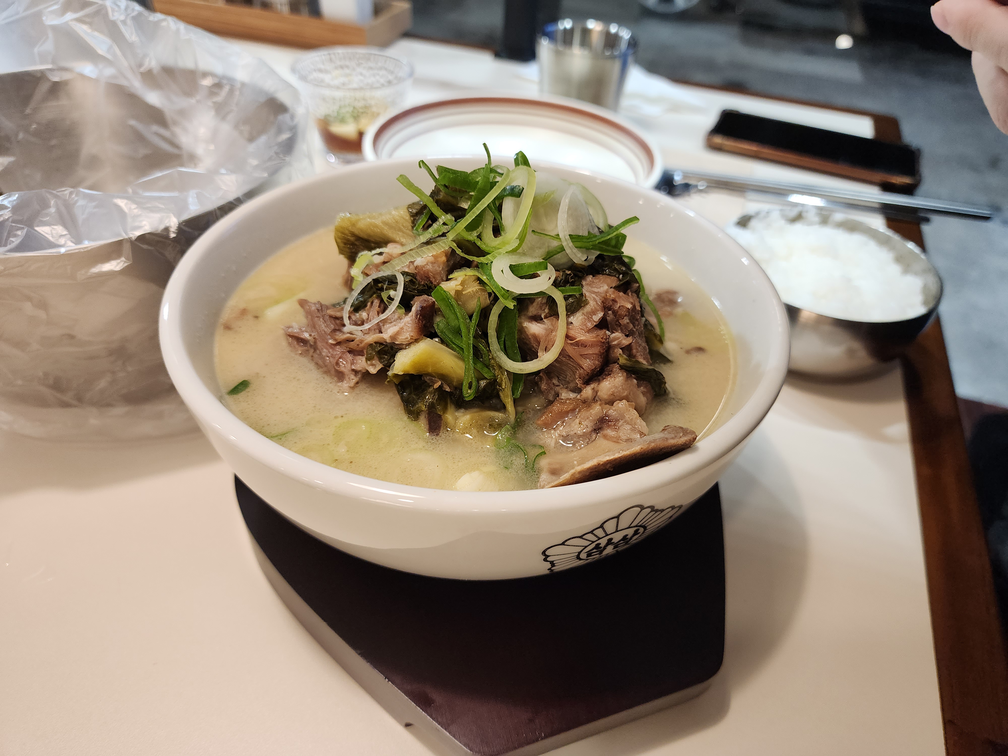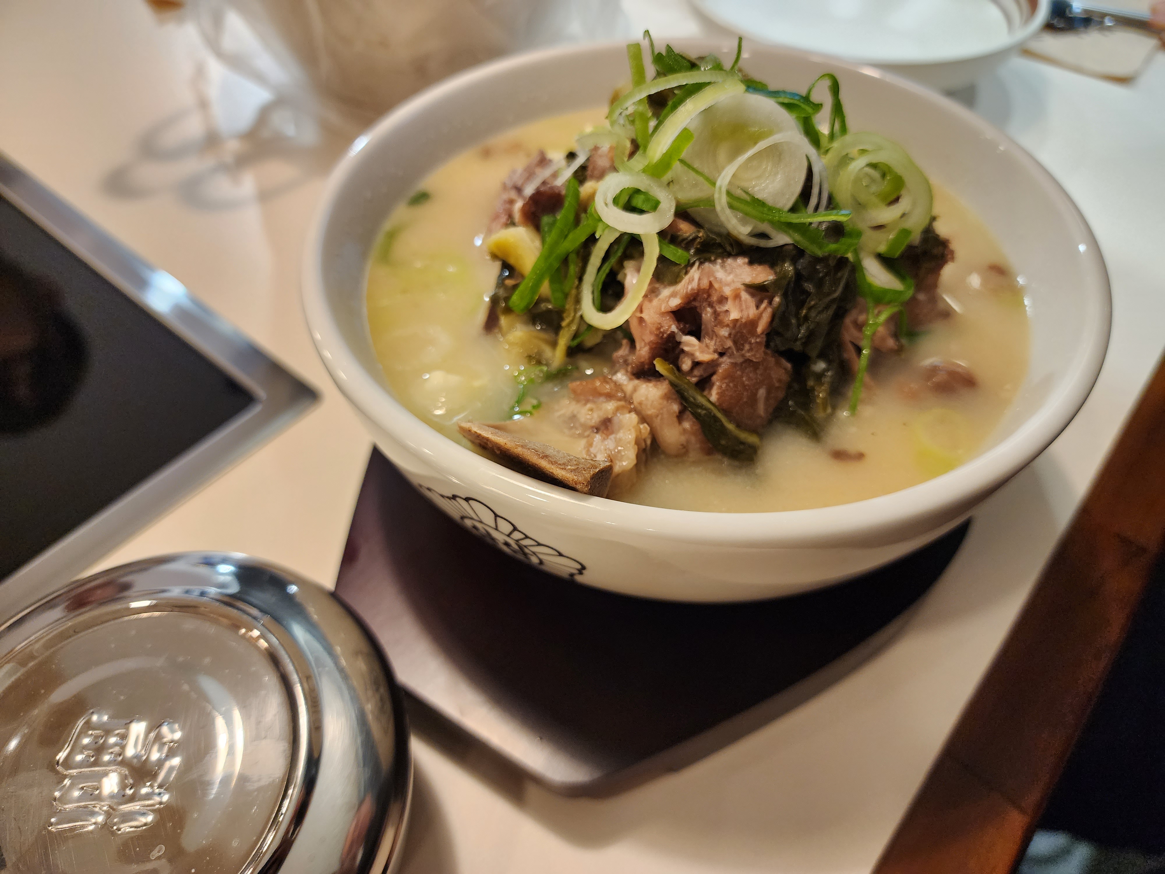 처음 먹어본다면 맑은 뼈국이 아주 담백하니 좋습니다. 담백하고 매운걸 싫어한다면 설렁탕보다 더 진한 맑은 뼈국이 좋습니다. 고기가 많이 들어간 설렁탕이나 곰탕을 먹는 느낌으로 든든하게 먹을 수 있습니다.