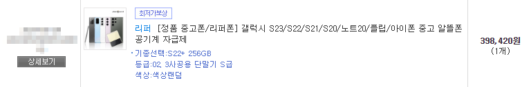이렇게 해서 S22+를 구매했는데 아주 만족하고 있어 다음에도 다시 사용할 생각입니다. 중고휴대폰은 소셜커머스, 오픈마켓에 많이 판매하고 있으니 검색해보시고 S급이상으로 추천합니다.