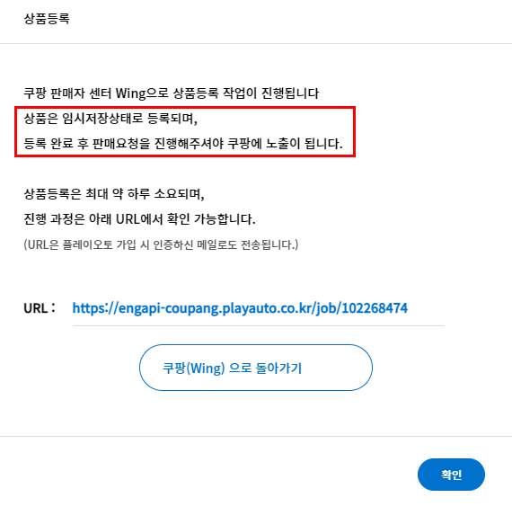 아주 쉽게 모든 정보를 입력하였고 이제 상품 등록 작업이 자동으로 시작이 됩니다. 작업이 끝날 때까지 기다려 주세요. 상품이 1,000개 미만이면 아주 빨리 끝납니다.