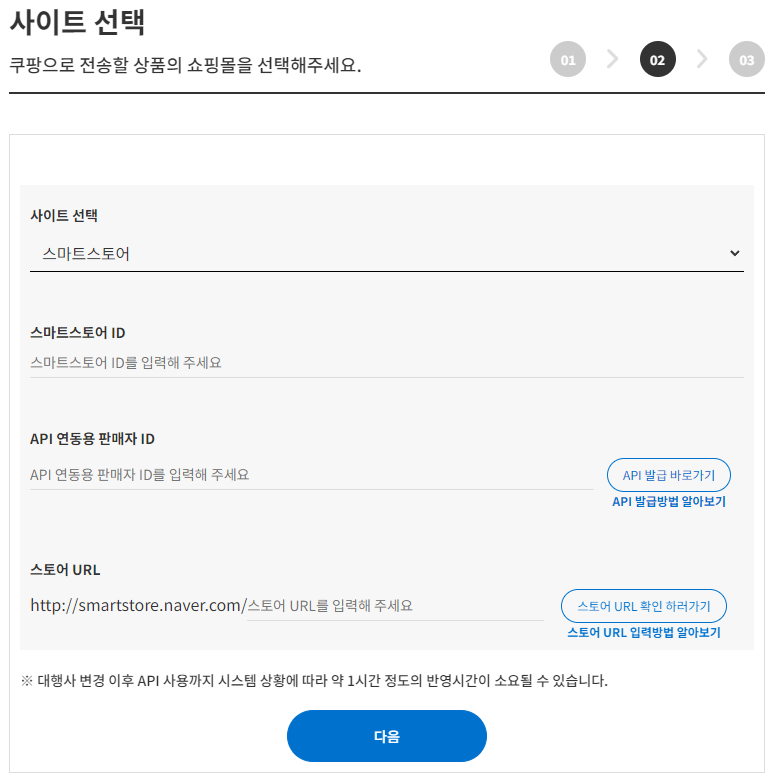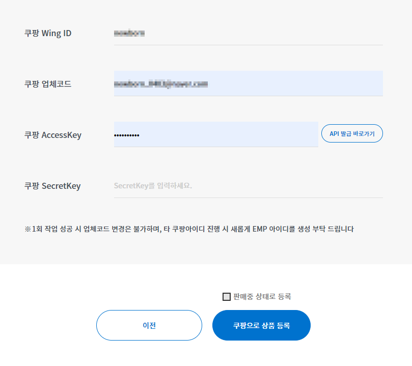 3단계. 상품등록할 쿠팡Wing 정보입력