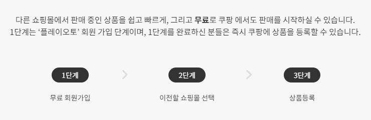 쿠팡에 상품을 대량등록하는 방법에 대해 알아보겠습니다. 쿠팡은 플레이오토 API를 사용하여 쿠팡에 상품을 대량등록할 수 있습니다. 네이버 스마트스토어, 지마켓, 옥션, 11번가, 인터파크, 무신사의 상품을 쿠팡에 등록할 수 있습니다.