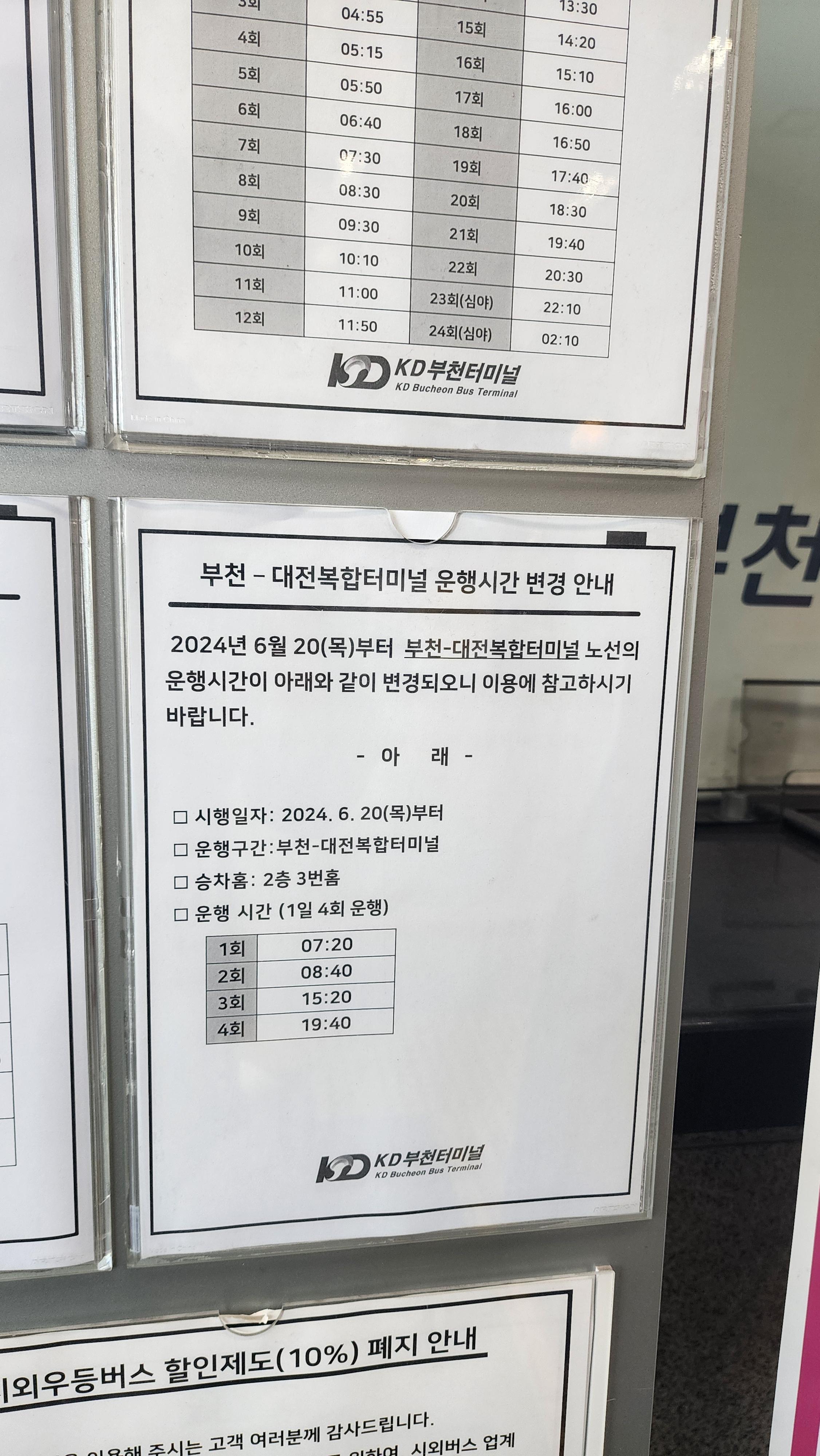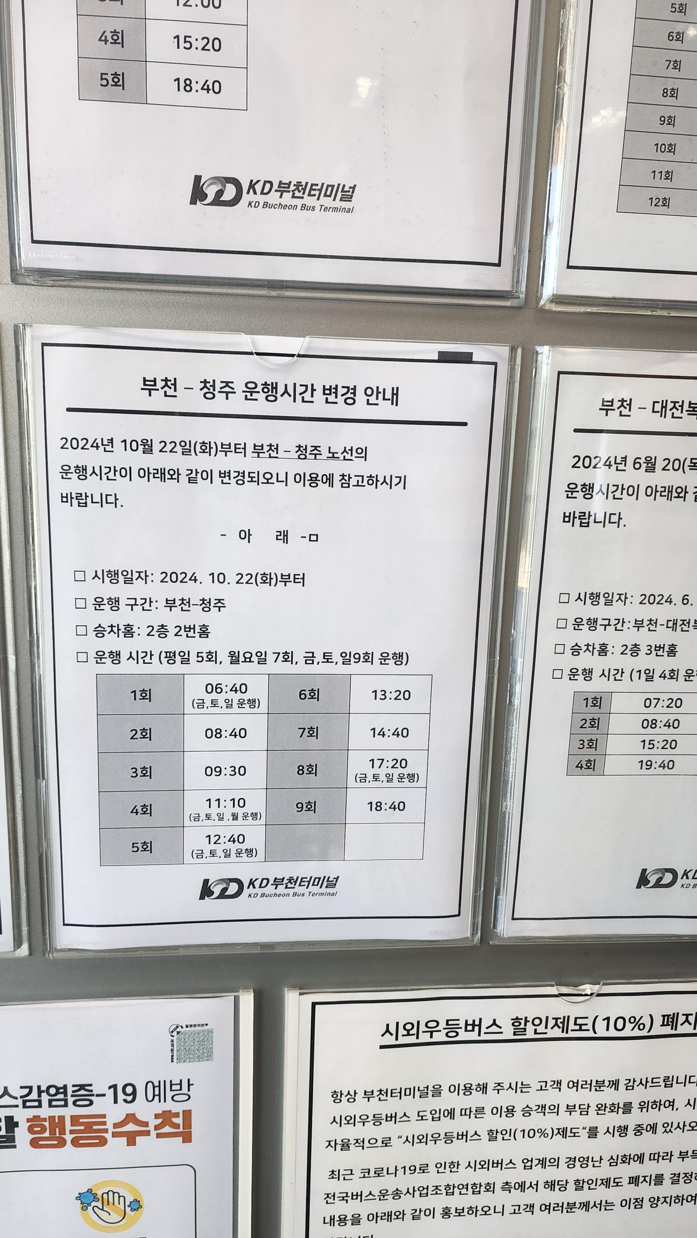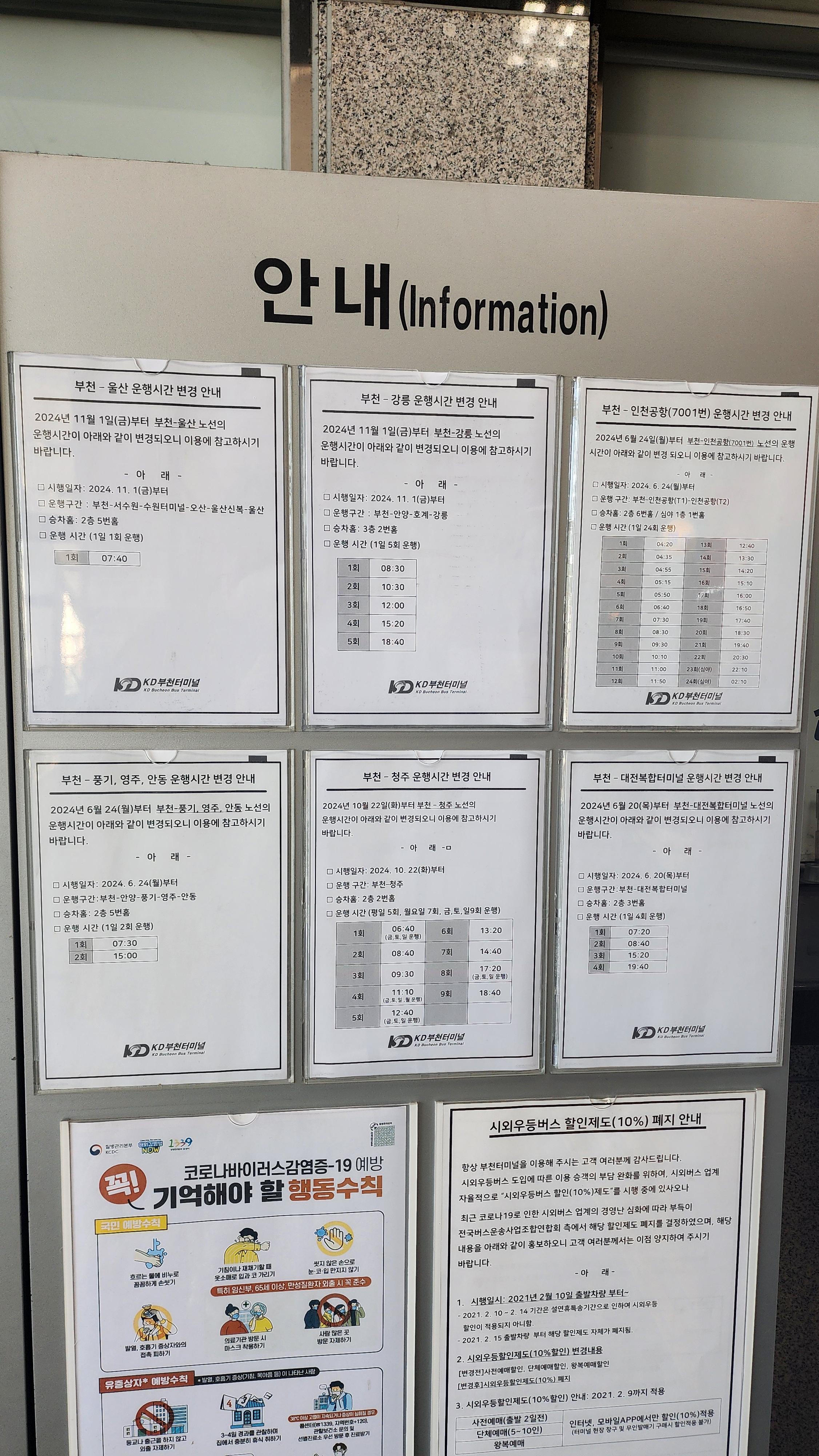 🚍부천 소풍 터미널 시간표 울산, 강릉, 청주, 영주, 풍기, 대전, 인천공항