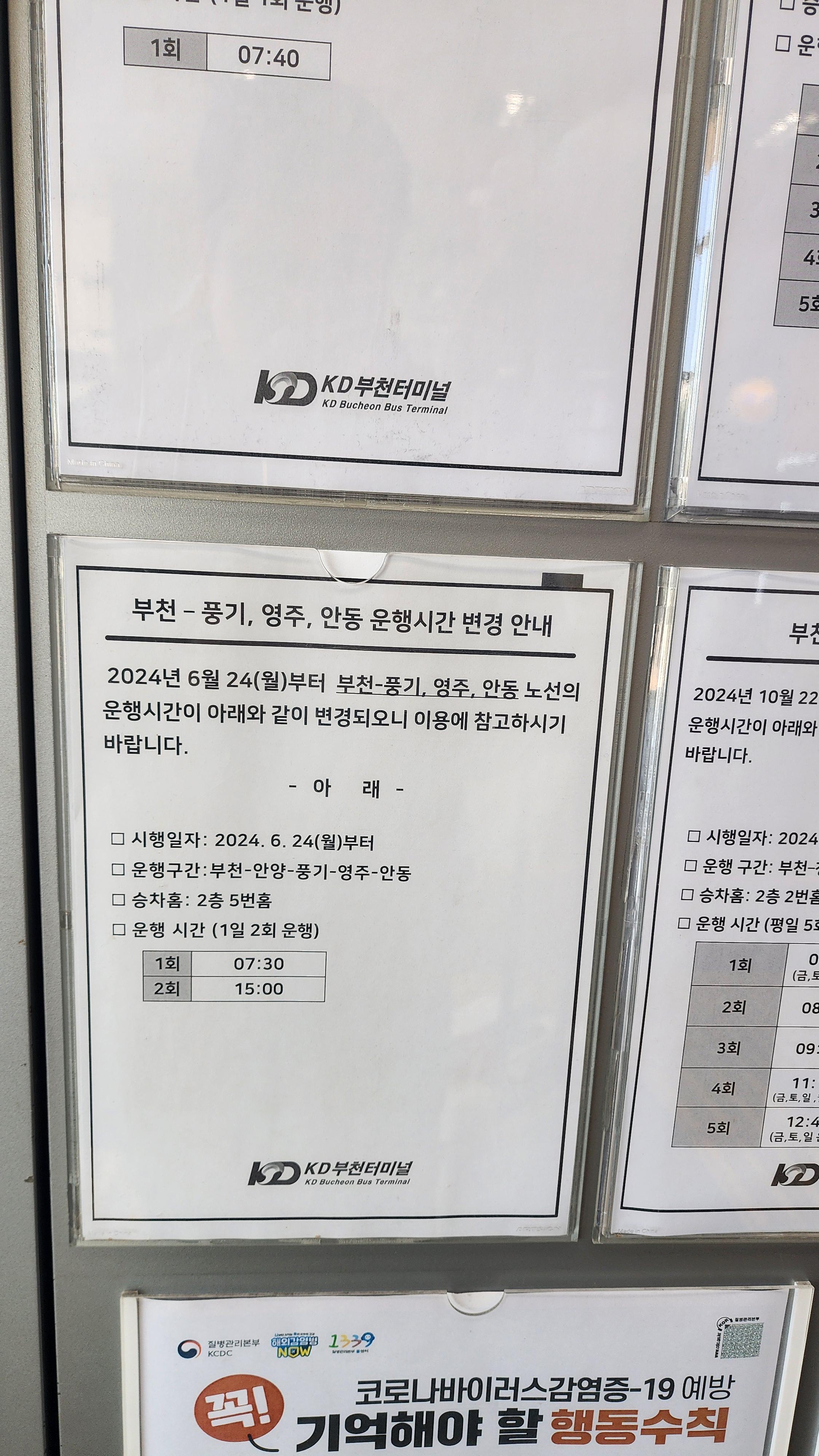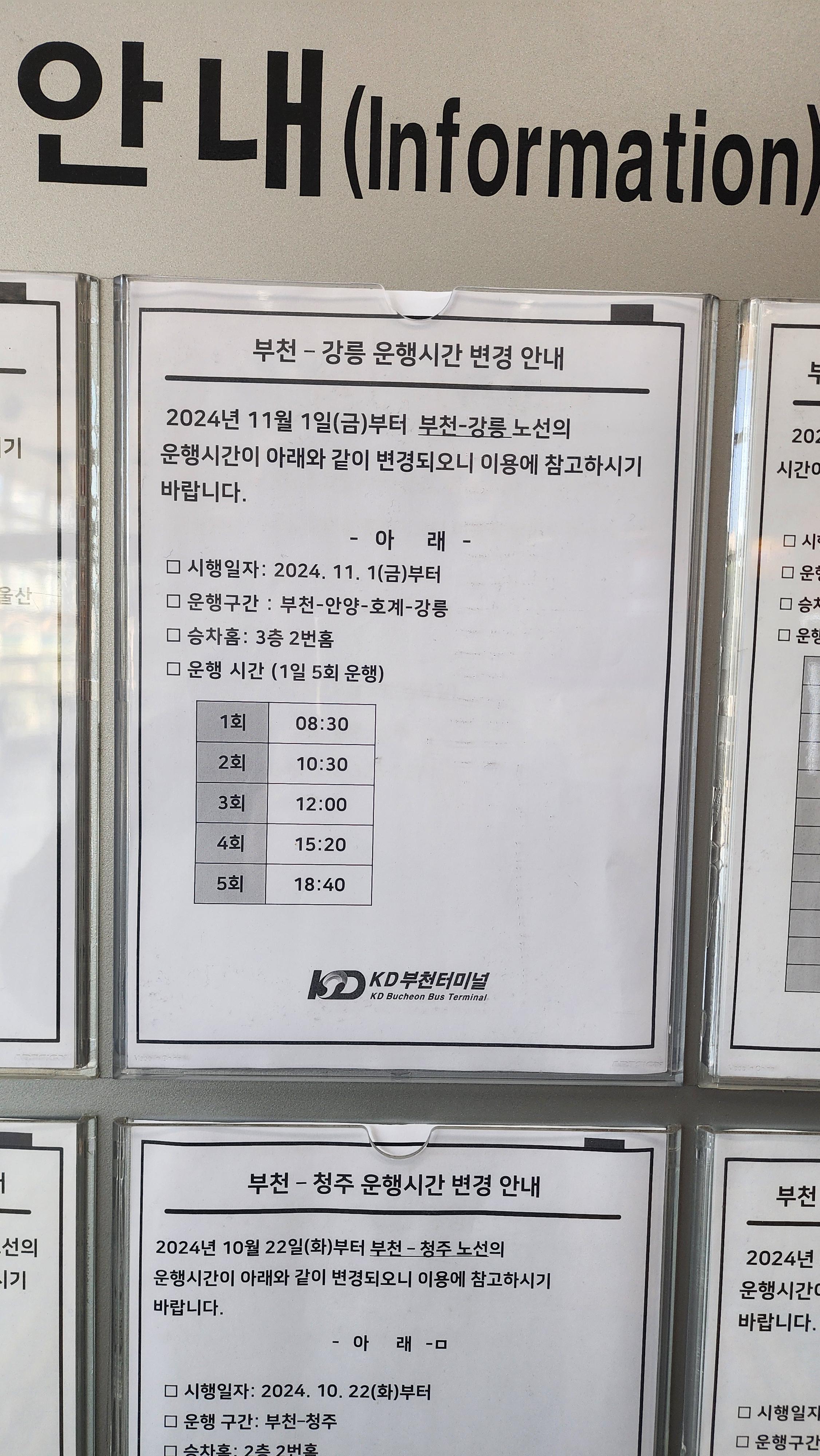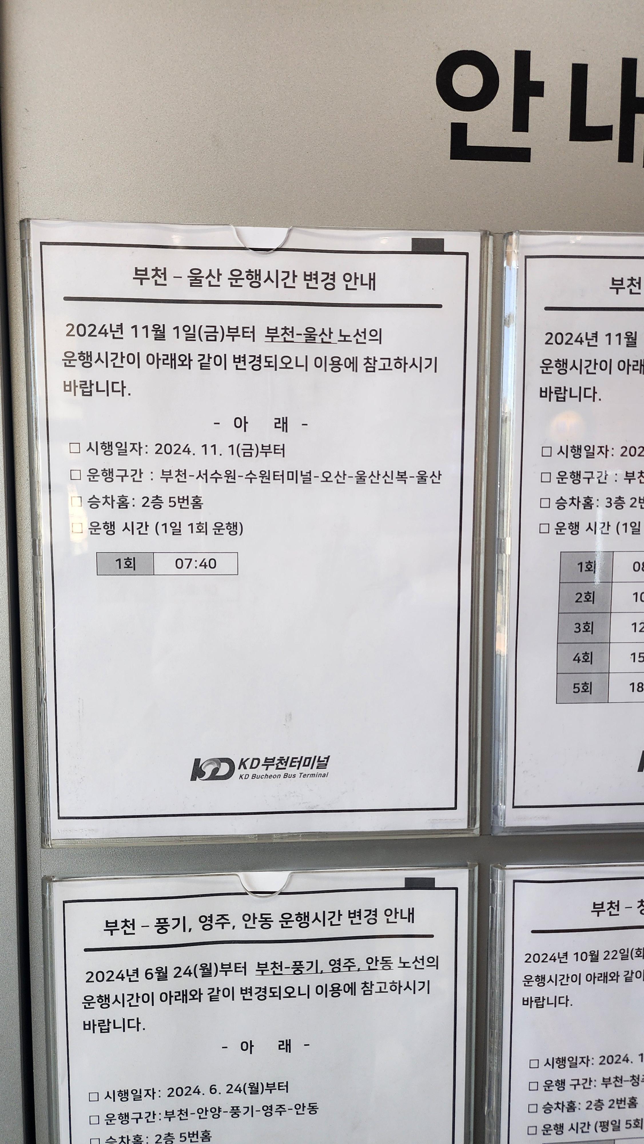 🚍부천 소풍 터미널 시간표 울산, 강릉, 청주, 영주, 풍기, 대전, 인천공항