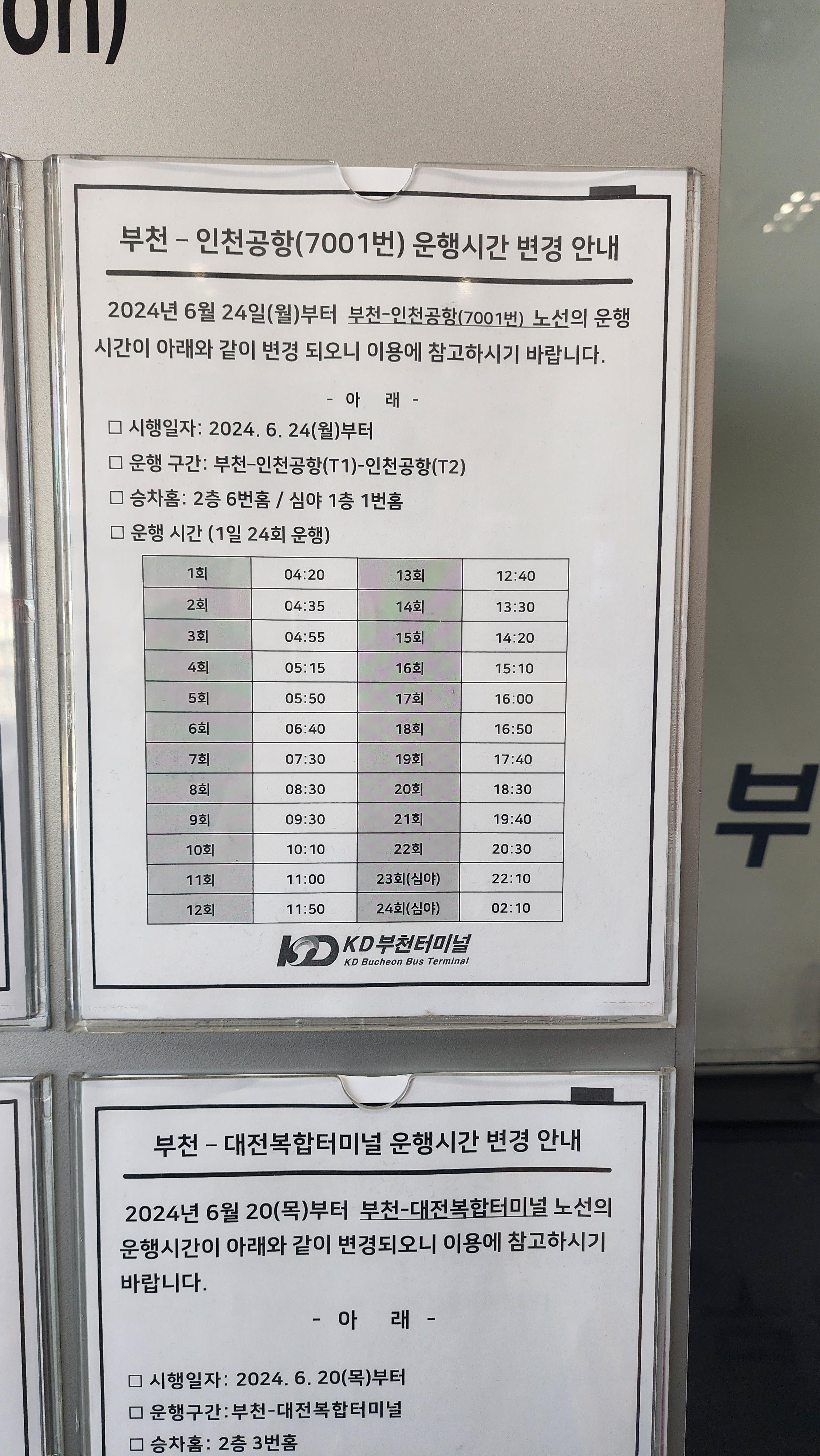 - 운행구간 : 부천 → 인천공항(T1) → 인천공항(T2)
