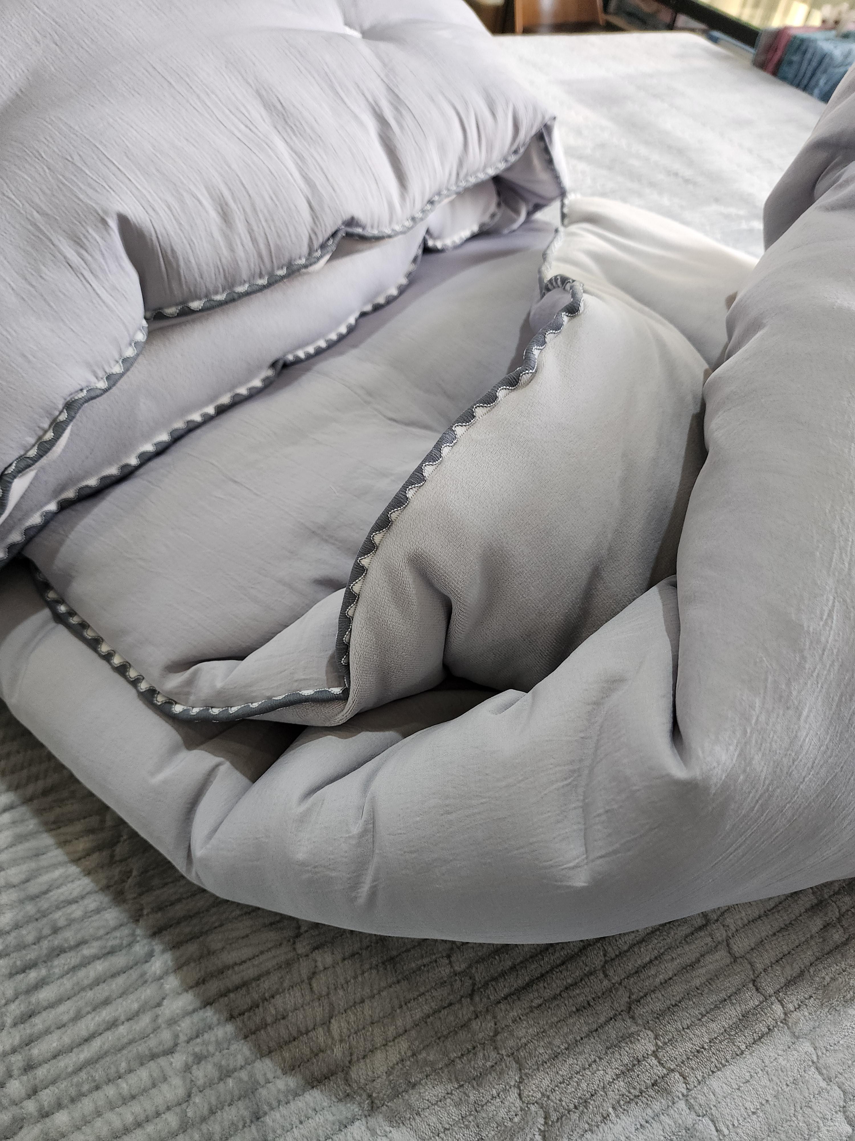 중국산은 거친 느낌이 난다면 국내산 이불은 포근한 느낌으로 바로 느낄 수 있었습니다. 쇼핑몰에서 판매하는 사진들은 보정을 한 것이라 색감의 차이도 많이 납니다. 조명없이 찍어도 휴대폰으로 촬영했는데 색감이 좋았습니다.