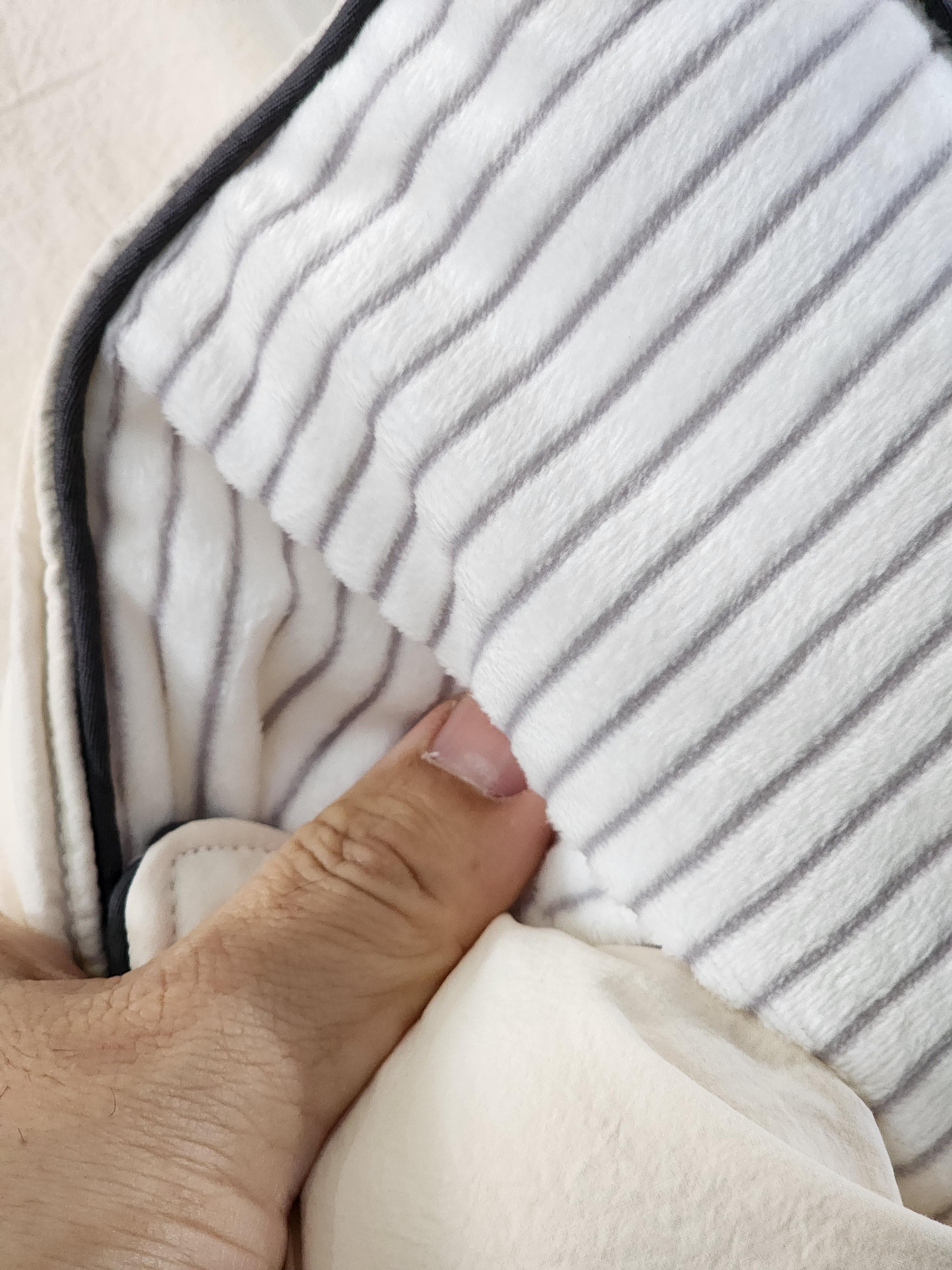 중국산은 거친 느낌이 난다면 국내산 이불은 포근한 느낌으로 바로 느낄 수 있었습니다. 쇼핑몰에서 판매하는 사진들은 보정을 한 것이라 색감의 차이도 많이 납니다. 조명없이 찍어도 휴대폰으로 촬영했는데 색감이 좋았습니다.