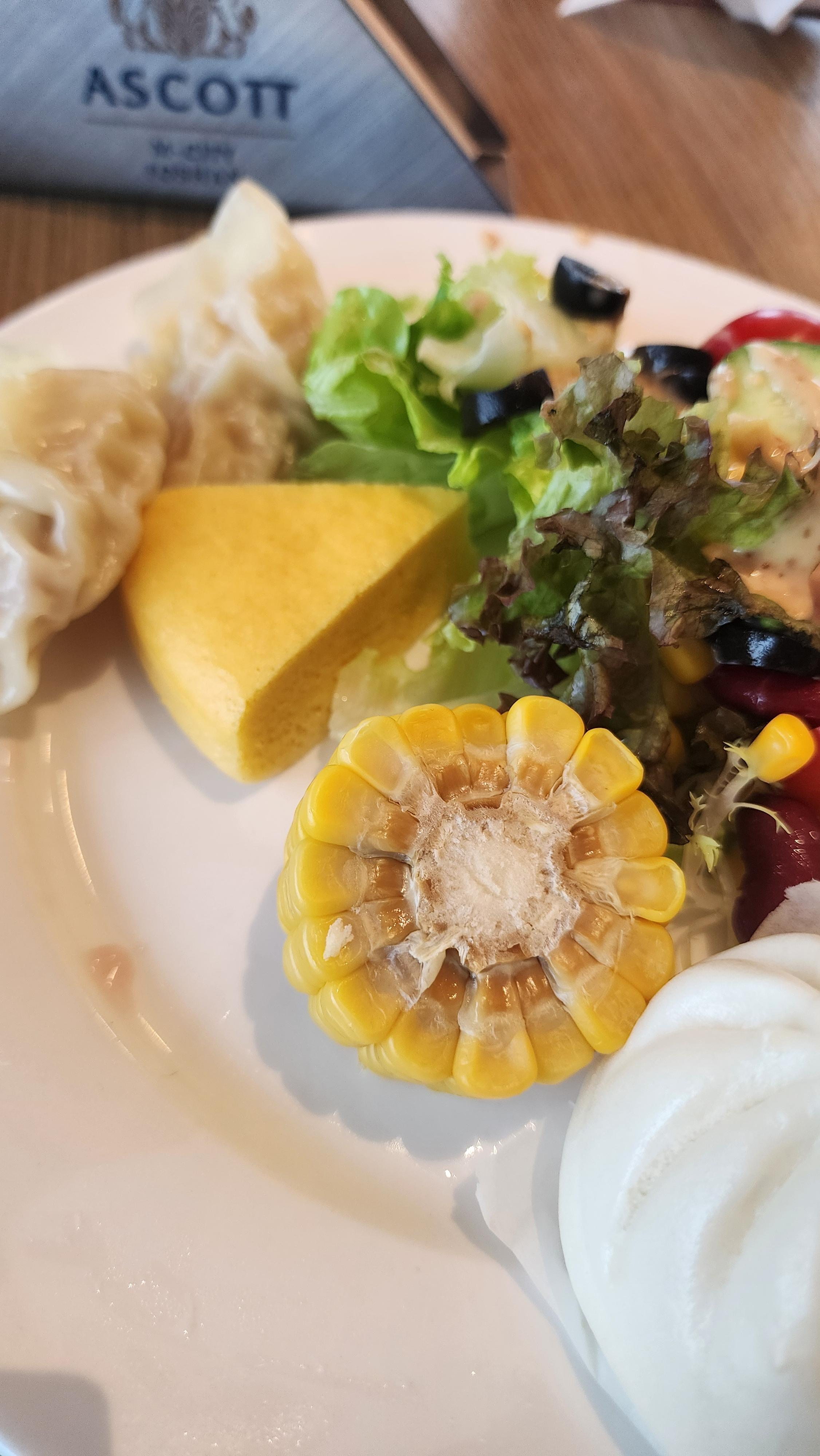 예전에 중국 사천 쪽에서 호텔식당을 이용해 봤는데 맛이 없었습니다. 기대를 하지 않고 가봤는데 한국에서도 동일한 메뉴로 되어 있는 게 많았고 만두 쪽만 더 있었습니다. 사진을 찍기 위해 음식을 가져오다 보니 꽤 많은 음식이 있었습니다. 유럽은 빵 종류가 많았는데 여긴 탕종류와 밥종류가 더 많이 있었습니다.
