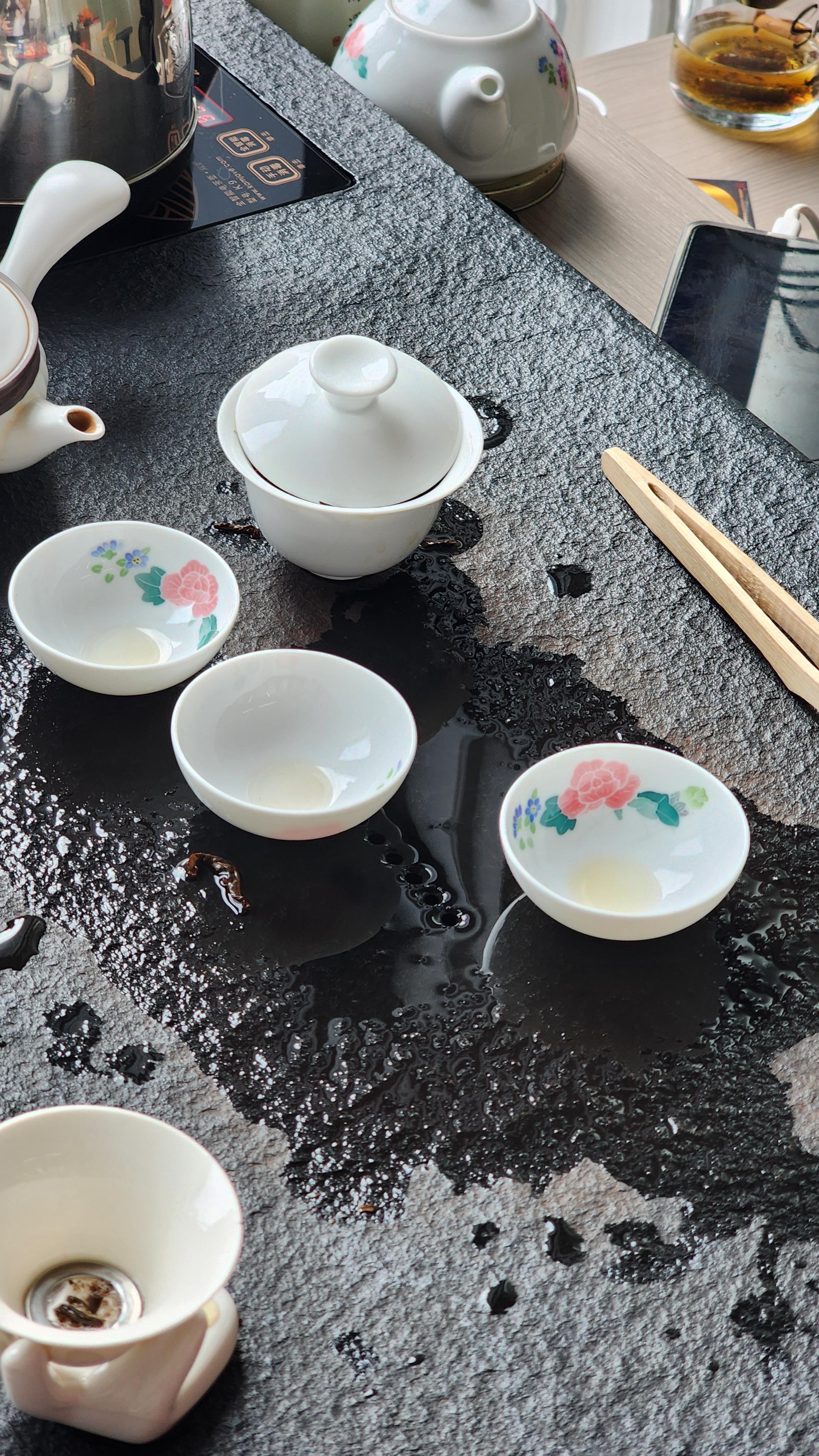 차에 대한 부심이 대단히 높은데 모든 사업장에는 차를 끓이고 마실 수 있는 공간이 마련되어 있습니다. 또, 차를 준비해 주시는 사람이 있어 찻잔이 비어 있지 않고 가득 차 있습니다. 차를 줄 때마다 감사인사를 할 수 없는데 바닥을 손가락으로 두드리면 "감사하다"는 뜻입니다. 차를 계속 채워주는데 굳이 그만 마시겠다고 의사전달을 하지 않아도 됩니다.