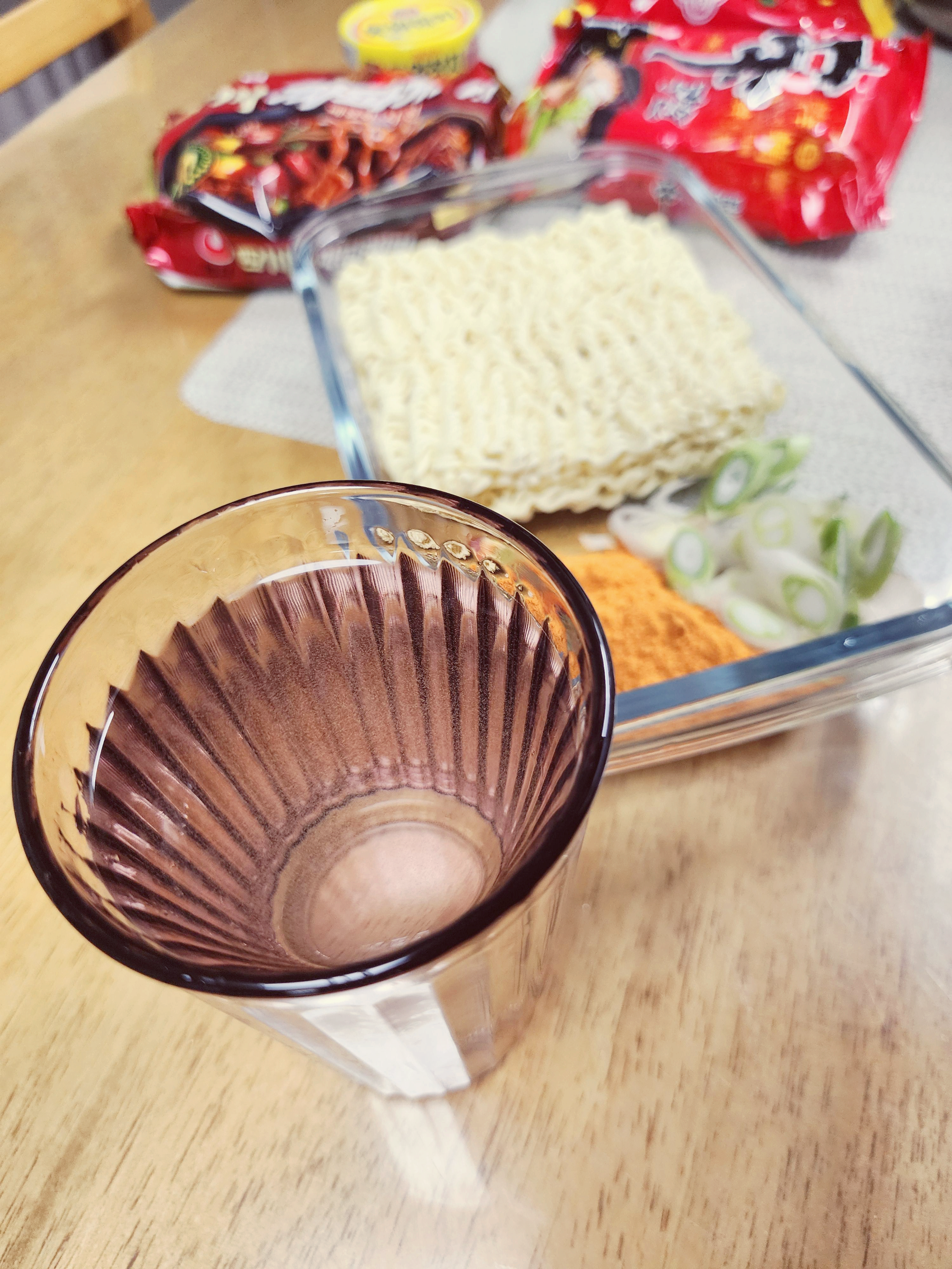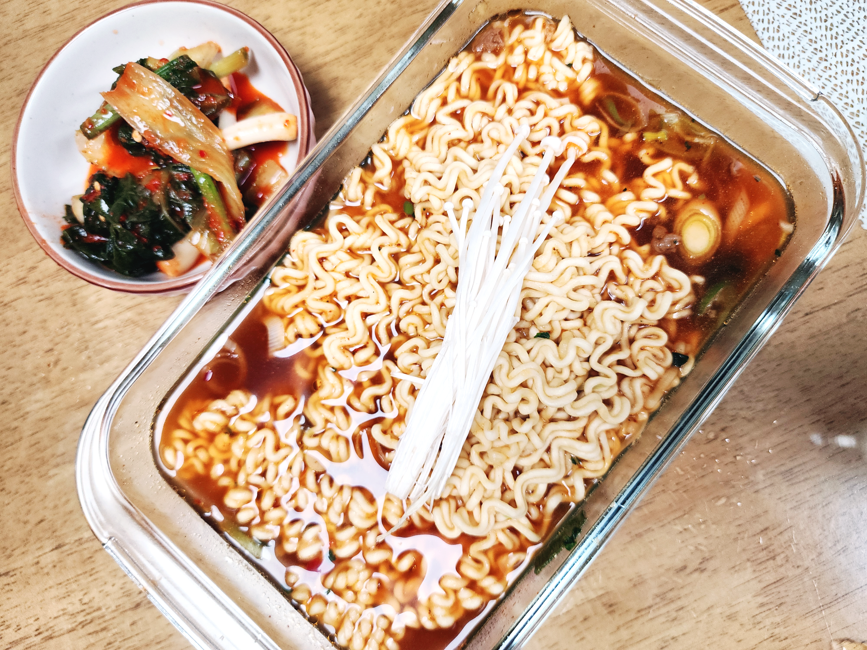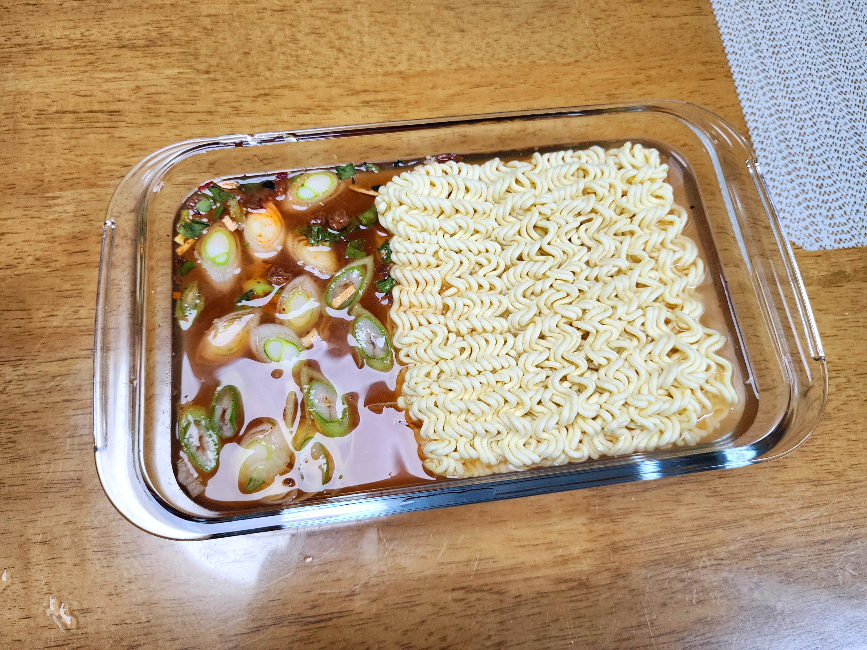 고추기름의 효과를 내고 싶다면 식용유를 1티스푼정도 넣으면 됩니다. 면이 얇은 라면에 테스트해보세요. 맛이 괜찮습니다.