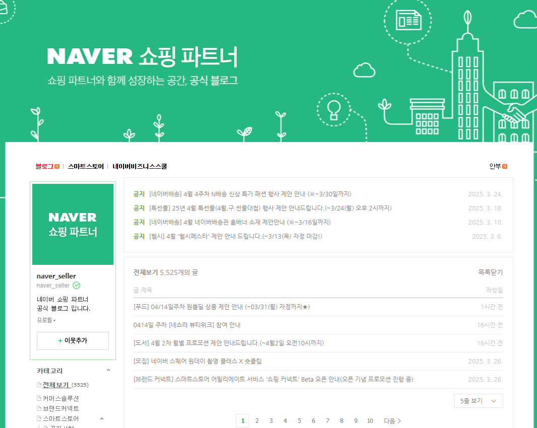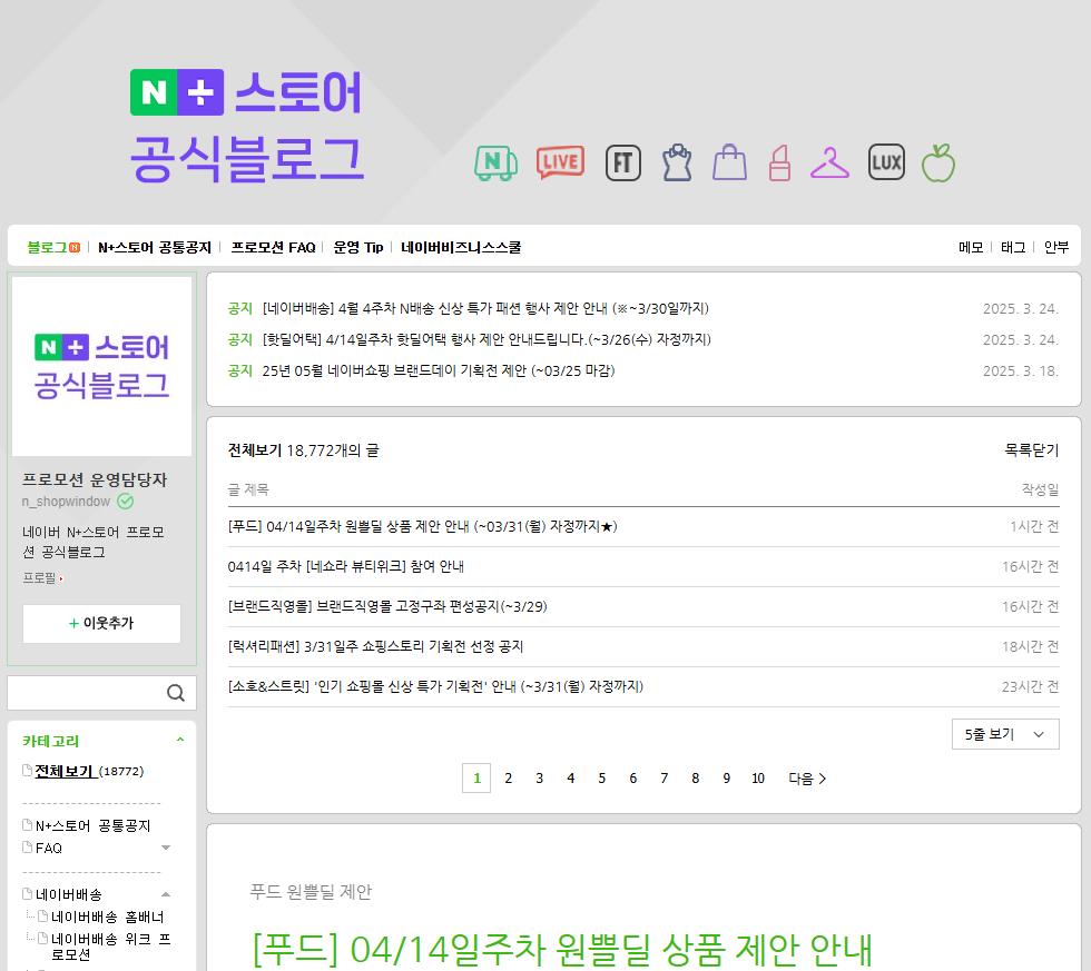 공식블로그가 예전부터 있었던 '쇼핑파트너 공식블로그'가 있었고 새로 생긴 'N+스토어 공식블로그'가 있습니다.